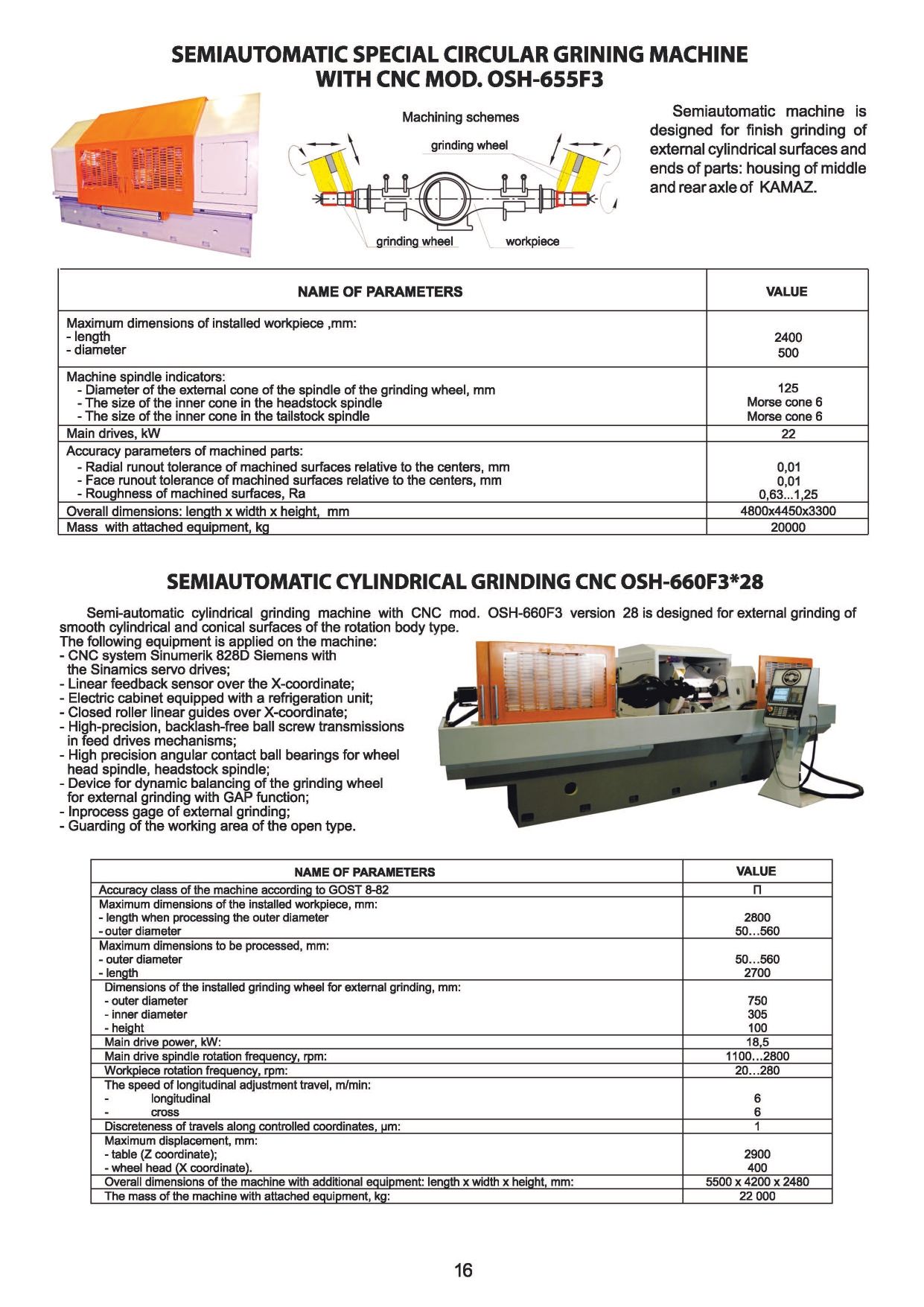 Semi-automatic circular grinding machine with CNC mod. OSH-660F3 version 28 is designed for outward grinding of smooth cylindrical and conical surfaces type of rotation body.