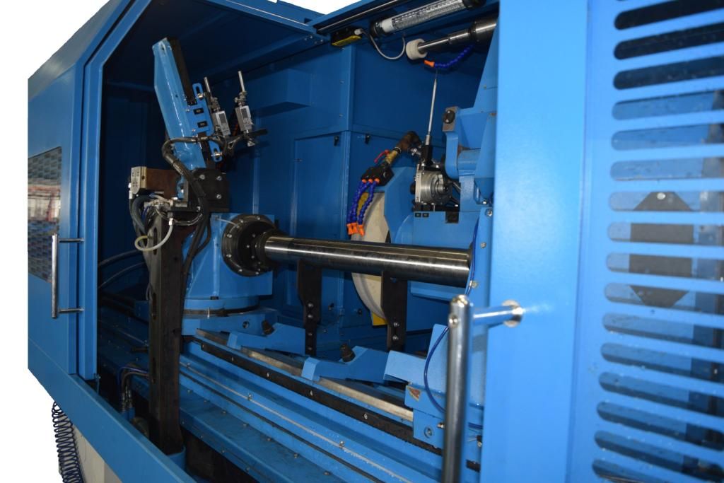 Hydraulic equipment is made as a separate unit and installed at the back of the machine, and the cooling system is on the left. Electric cabinet is on the machine right side, and in front of the control panel. The base of the processed parts is made in the centers of the front and rear headstock, the axial orientation of the part is made using a touch sensor. Grinding of the part is performed by rotating the workpiece and cross-moving the grinding head.