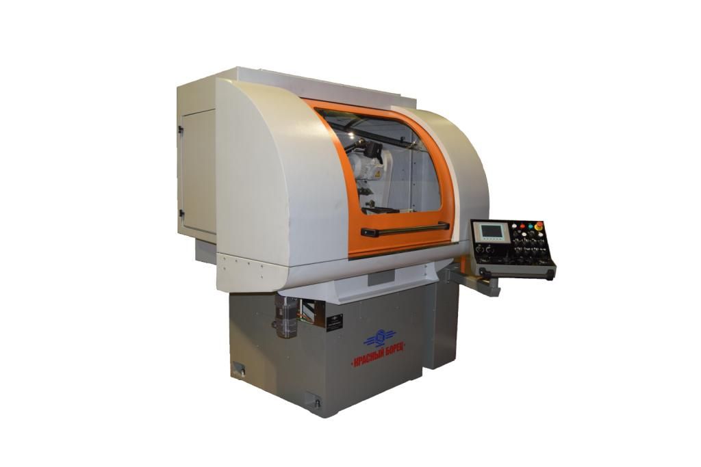 The machine has manual and automatic control from the command controller. The machine has a layout with a moving table on which the workpiece is installed and the movement of the wheel head perpendicular to the axis of the centers relative to the workpiece. Basing of the processed parts is made in the centers of the headstock and tailstock or in the chuck.