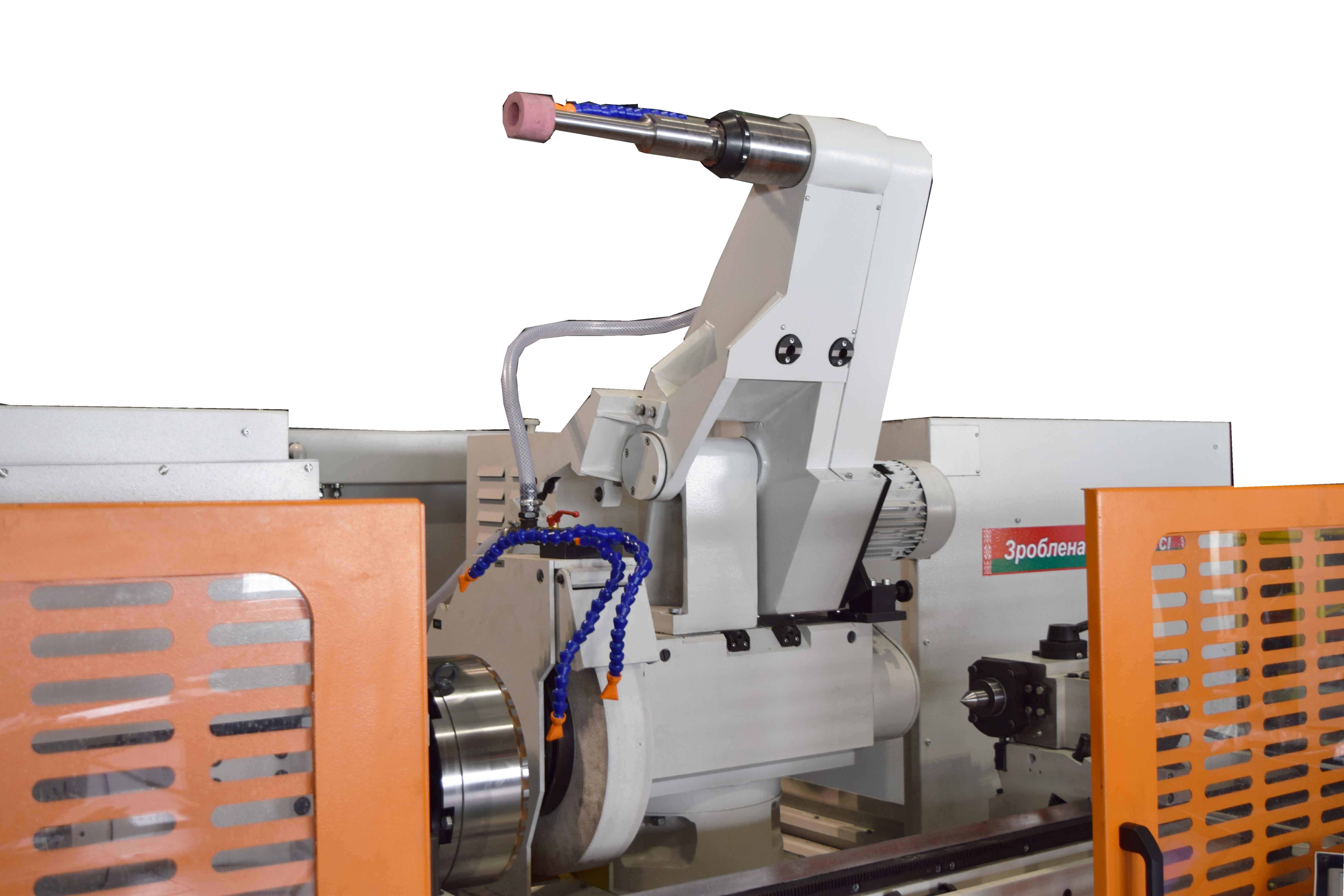 Workpieces basing can be done in headstock and tailstock centers or in a three-jaw (four-jaw, magnetic) chuck. Product workhead can be manually turned in the horizontal plane - counterclockwise (to the wheel) by 45 °. The grinding wheel-head has the ability to manually rotate in the horizontal plane ± 15 °.