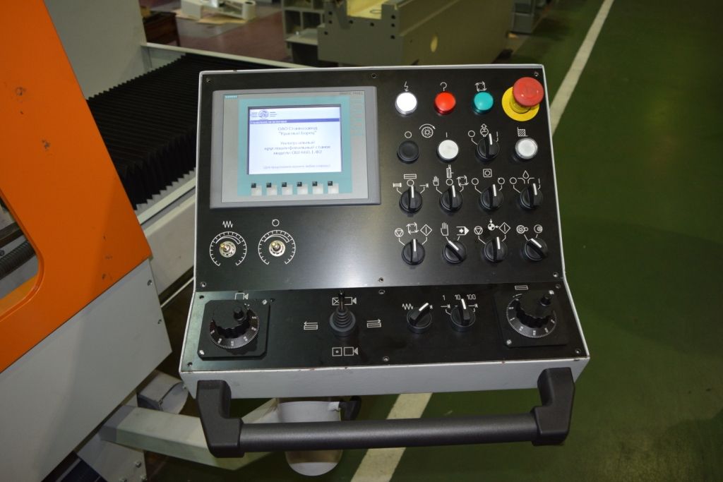 The control system is based on a programmable command controller and servos that allow processing parts in both automatic and manual modes. The base of the processed parts is made in the centers of the headstock and tailstock or in the three-cam chuck of the headstock. It is possible to use lunettes. The machine has a layout with a moving table, on which the headstock (leading) is installed, with the part being processed and the tailstock.