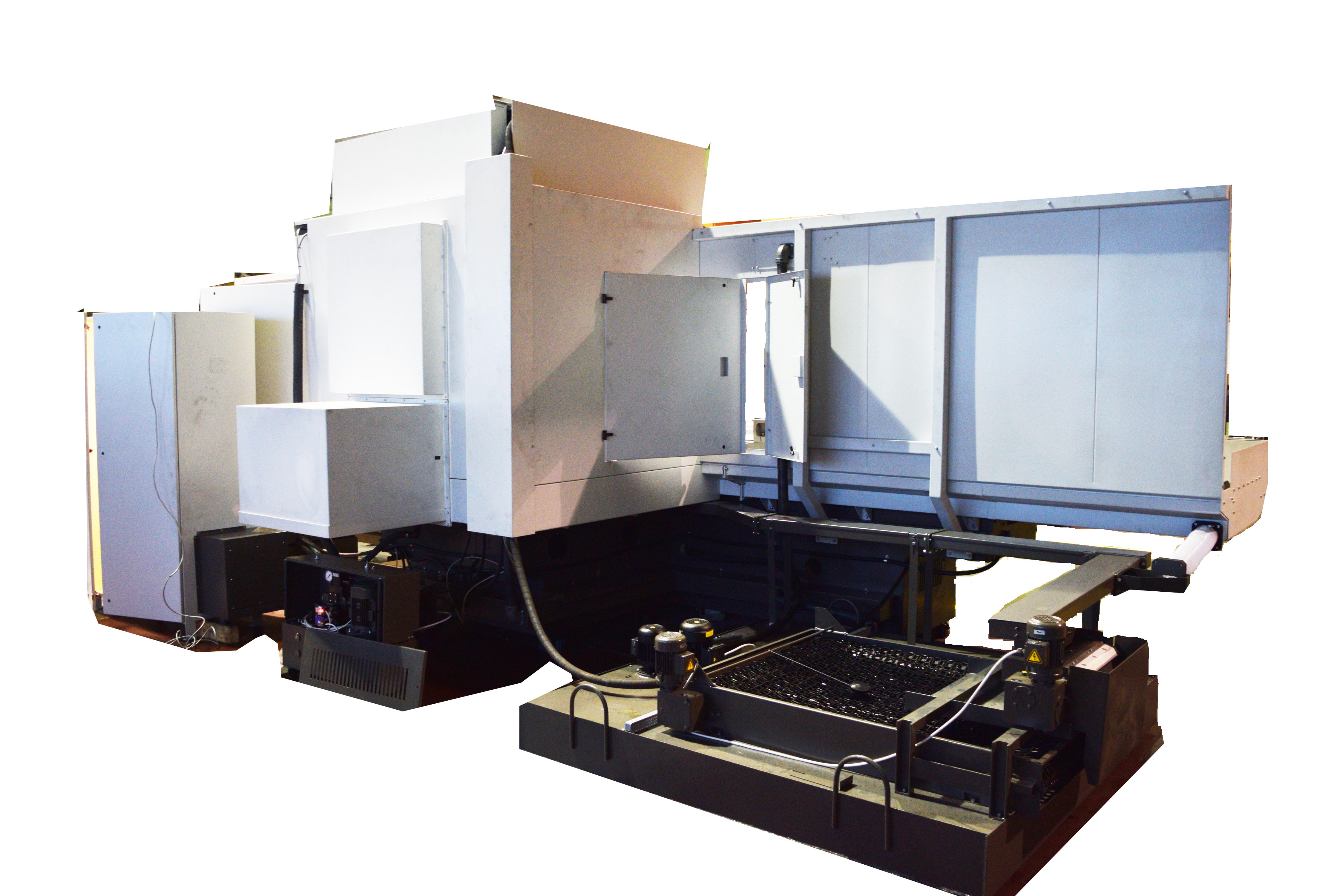 Left rear of the bed the the coolant feed and cleaning system is mounted, on the right there is a hydraulic unit, right rear there is the cabinet, and the front control panel with the controller S7-1200 Siemens.