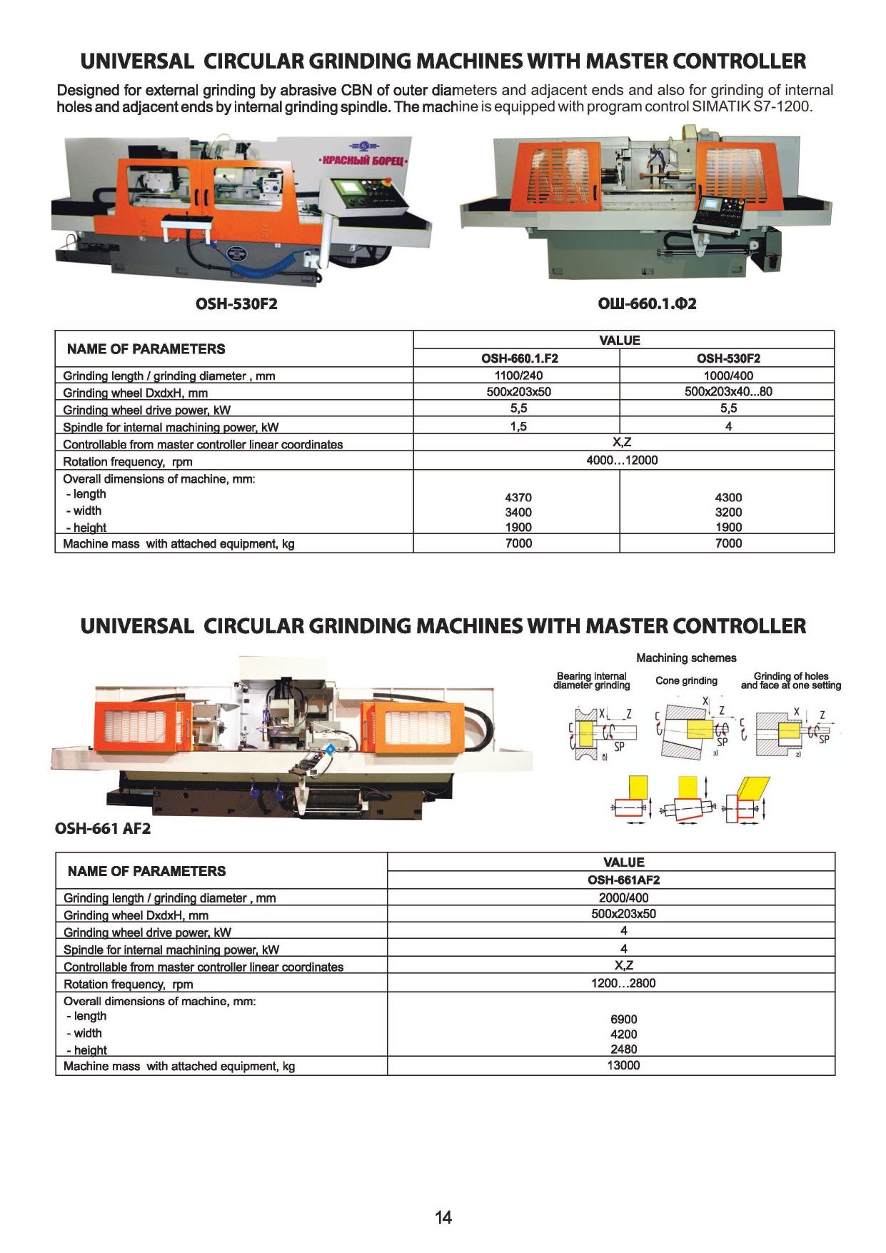 Universal circular grinding machine model OSH-661AF2 is designed for external grinding of smooth cylindrical and conical surfaces with the possibility of internal grinding of holes for finishing spindles.