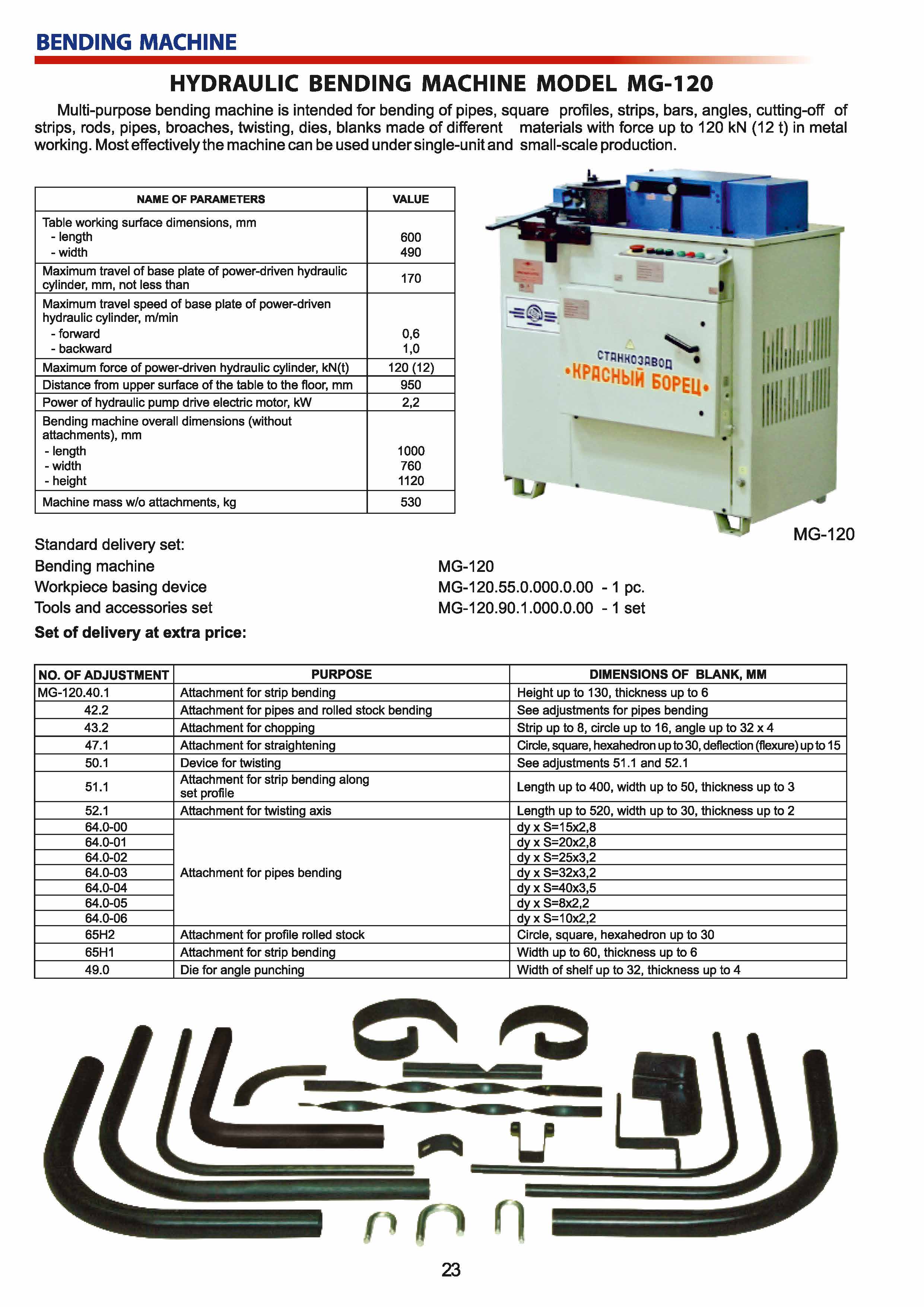 ATTACHMENTS FOR HYDRAULIC BENDING MACHINE MG-120
