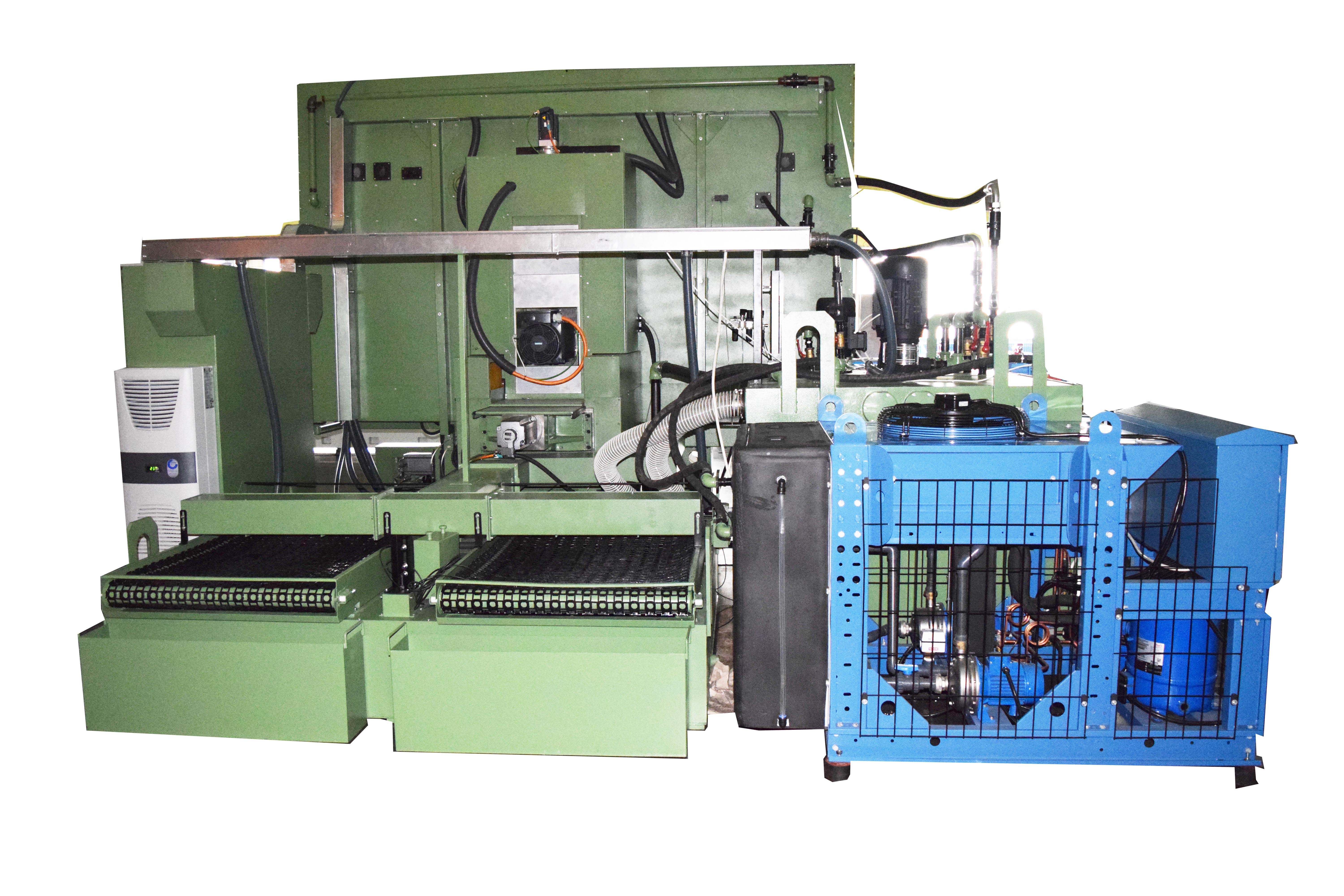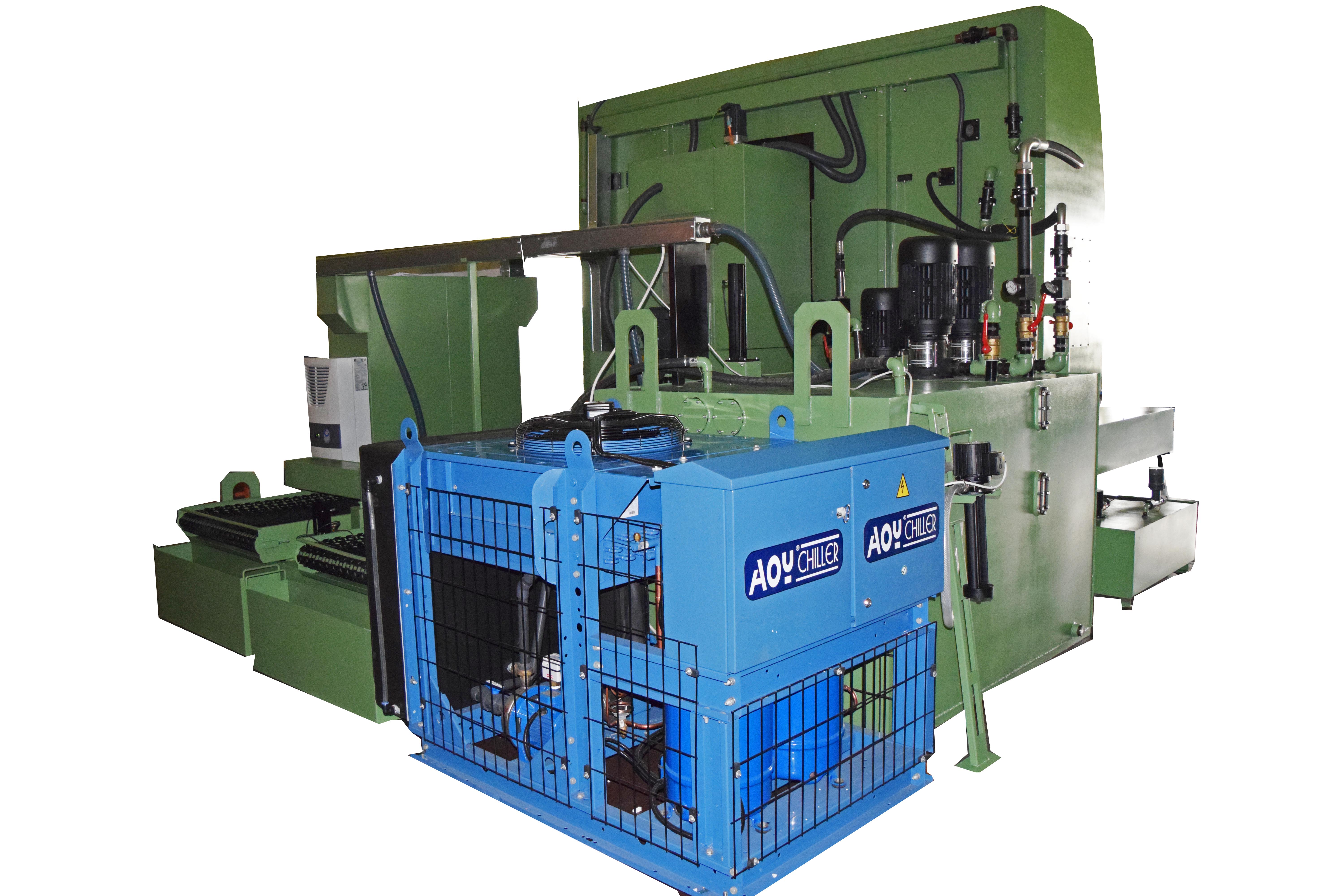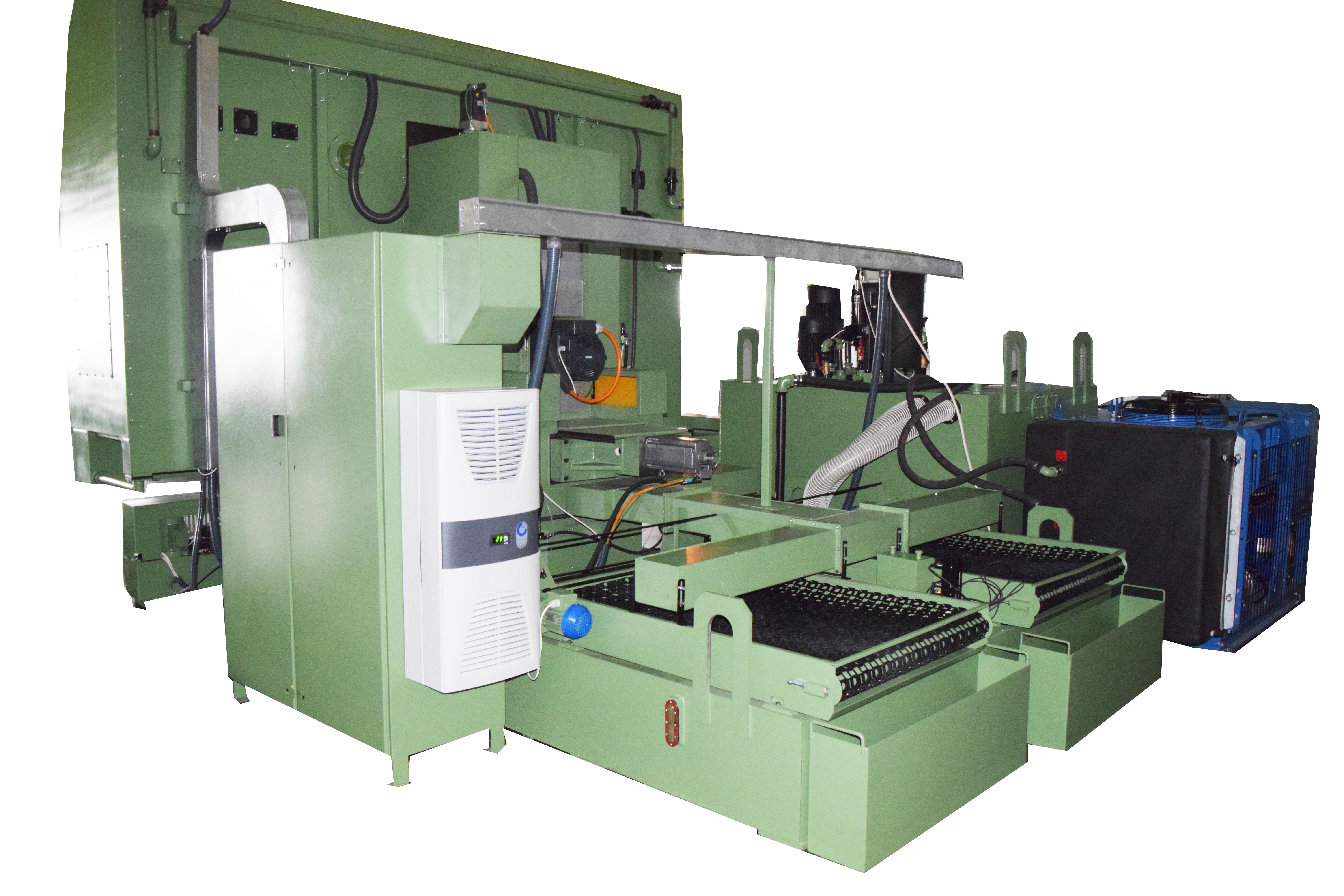 To the left from behind of machine coolant feed and treatment system with refrigerating unit for support of constant temperature of coolant-lubricant is installed. System includes receiving tanks with filters-conveyors for coolant treatment, clean tank with pumps of coolant –lubricant feed into the machining zone and pump of grinding wheel hydraulic cleaning, autonomous refrigerating unit. Hydraulic station is located to the right of machine and electric cabinet is to the right from behind. Control panel with CNC system is located to the right in front of machine.