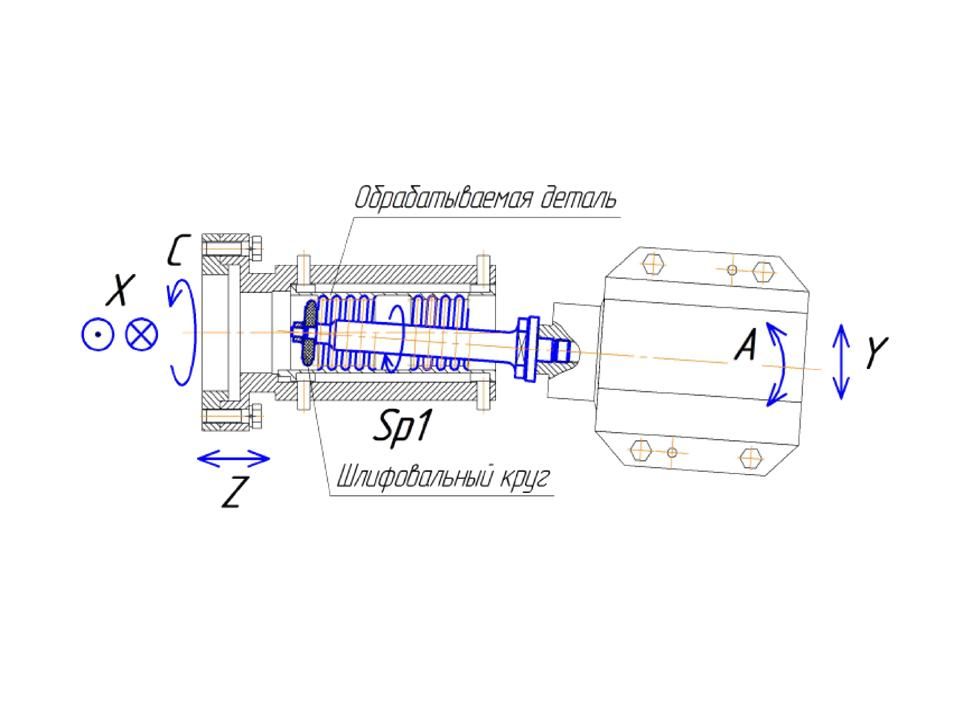 - Linear and circular feedback sensors of the firm «Fagor» over programmable coordinates - cross travel of wheel head – coordinate Х; - longitudinal travel of slides with wheel head – coordinate Z; - angular turn of wheel head in vertical plane (tilt angle of thread) – coordinate А; - machined part rotation - coordinate C.