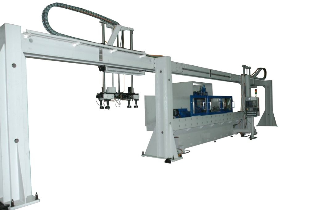 Total quantity of machines model OSH-651.2.F3 used in automatic line is two units. Machines are installed successively with their facing parts opposite each other. Each machine is equipped with overhead manipulator with hydraulic and electric equipment for providing removal – installation of machined part. Automation of manipulator operation is ensured by machine CNC system.