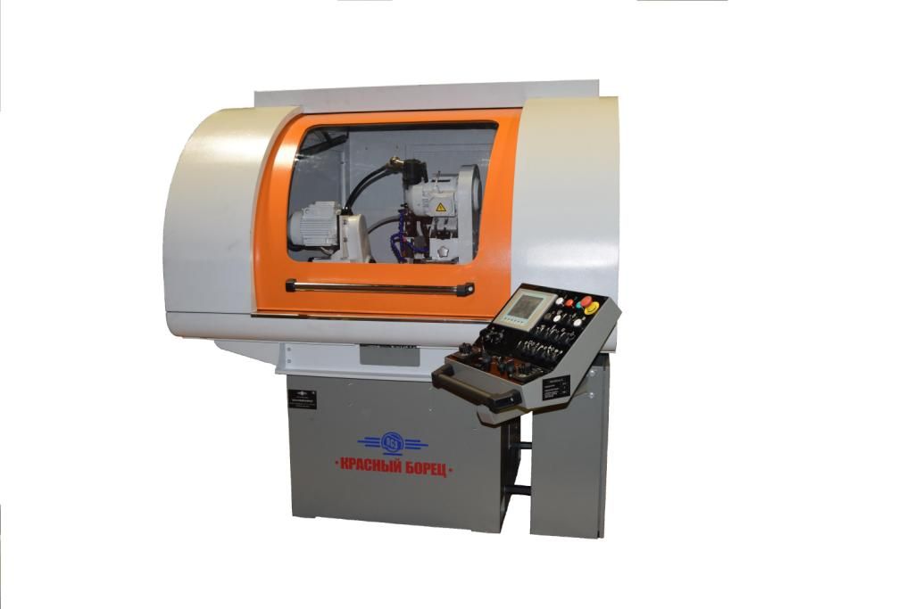 The machine has manual and automatic control from the command controller. The machine has a layout with a moving table on which the workpiece is installed and the movement of the wheel head perpendicular to the axis of the centers relative to the workpiece. Basing of the processed parts is made in the centers of the headstock and tailstock or in the chuck.